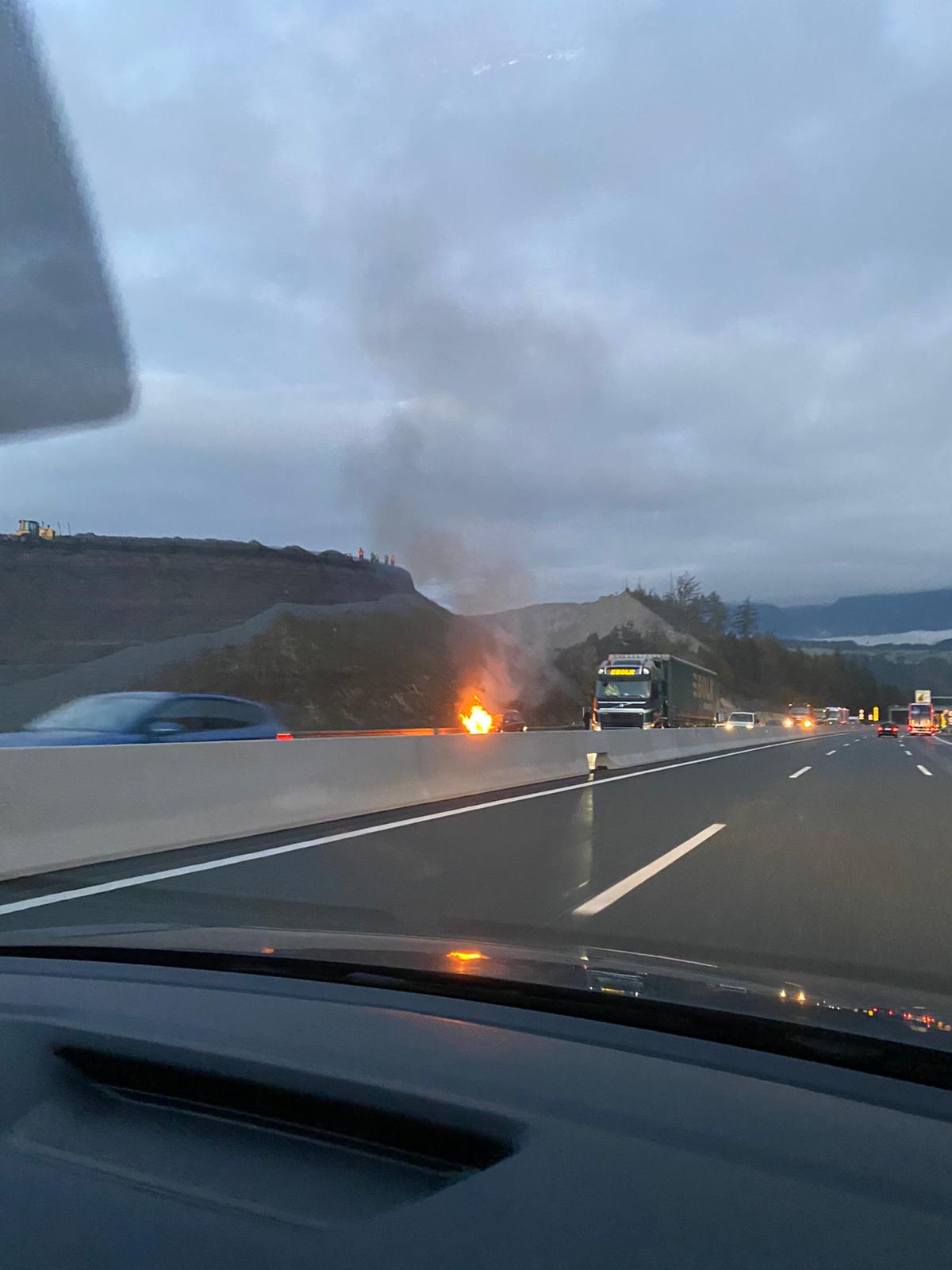 - Einsatzbericht: Ein Richtung Süden fahrender Pkw geriet in Brand.